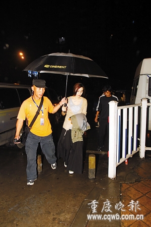 當(dāng)晚凌晨,范冰冰乘一輛黑色別克轎車到達(dá)超市外的公路旁。范冰冰顯得非常隨意,下車之后閑庭信步地在沿公路走到超市,只有一個工作人員拿著一把大傘上前“接駕”。范冰冰當(dāng)晚已是帶妝到達(dá)片場,穿著一身連衣裙,看上去非常優(yōu)雅。看到有記者拍攝,撐傘的工作人員馬上學(xué)習(xí)劉德華、趙本山的經(jīng)驗,一把大傘將范冰冰遮得嚴(yán)嚴(yán)實實。