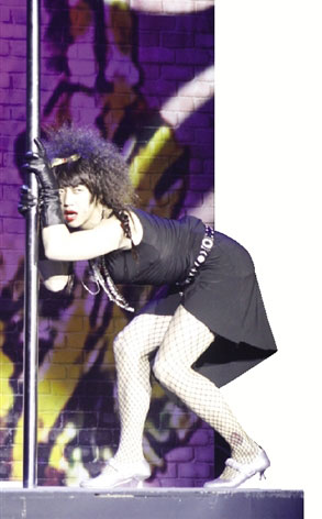 鄧超扮演的兩個角色都個性十足,一個是自負女子九兒,一個是喜歡裝酷、滿嘴外語的情圣俞白眉。一個是妖嬈的女子,一個是正宗的男人,穿梭在這兩個跨度極大的角色之間,鄧超游刃有余。開場不久,鄧超扮演的九兒身穿性感的黑裙背對觀眾出場,先是一段“婀娜多姿”的舞蹈,隨后又沿著豎桿從二樓滑向一樓,與房東展開了一場令人意想不到的智力測試。鄧超的舞臺動作有些夸張、不雅,由于是男扮女裝,充滿了搞怪意味,因此大多數(shù)觀眾都抱以寬容的大笑。根據(jù)問卷調(diào)查統(tǒng)計,12名觀眾認為九兒的扮相增加了喜劇效果,占總數(shù)60%;6名觀眾表示很不錯,占30%;1名觀眾認為太夸張,1名觀眾感覺一般。