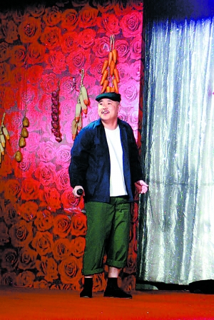 晚上10時許,在一共6個節(jié)目持續(xù)了近3個小時的現代二人轉表演后,趙明遠上臺了。這位29歲的演員要模仿41歲的王小利扮演的劉能。