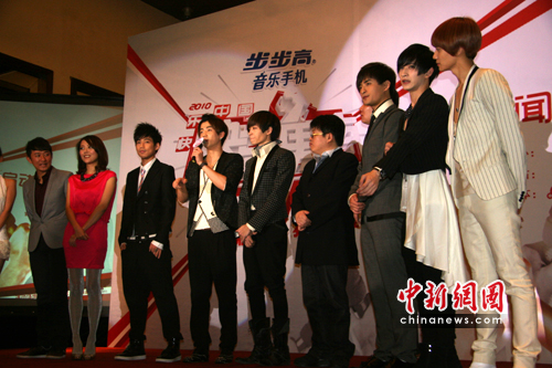 中新網(wǎng)3月31日電(王祎) 今天下午,“2010快樂男聲”在北京宣布正式啟動,張杰和蘇醒作為往屆快男代表出席了活動,至上勵合組合也到場助陣,本屆快男總導演洪濤在介紹賽制時重點強調(diào)了兩大看點。步步晉級的賽制在此次快男比賽有所突破,由海選中有潛質(zhì)選手組成的偶像組合“快樂天團”將直接晉級總決賽,空降六強晉級賽;另一看點就是首開北美、澳大利亞、馬來西亞三大海外報名點。同時,對于韓庚出任快男代言人的傳聞,洪濤間接給與了否定,稱并沒有設(shè)立代言人的位置。