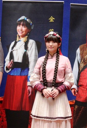 《香格里拉》是歌壇四小天后金莎繼《神話》之后又一次接觸影視劇,對于自己首次出演少數(shù)民族角色,金莎絲毫不敢怠慢;為了達到最佳效果,金莎甚至不惜代價自掏腰包制裝,力求最完美的自己。金莎告訴記者,為了今天的這場發(fā)布會自己連夜找了服裝設(shè)計師趕制了這套少數(shù)民族服裝,為的就是提前感受一下香格里拉的人文氣息。的確,金莎今天的這套服裝著實吸引了不少媒體的閃光燈,搶鏡成功。不過比起演員出身的胡歌來說,金莎則稍顯遜色。