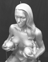 這座雕塑是朱莉在給一對(duì)雙胞胎喂奶的裸體坐像,作者為紐約藝術(shù)家丹尼爾·愛德華茲。雕塑將于9月11日在俄克拉何馬州諾曼市MAINSITE當(dāng)代藝術(shù)館亮相。