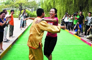 昨天下午,章子怡作為特奧全球形象大使現(xiàn)身北京通州培智學校,和近百名智障學生一起玩融合滾球和足球。在比賽中取得勝利的章子怡興奮地和自己的搭檔——一位智障男孩擁抱在一起。