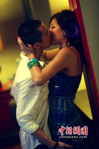 徐靜蕾向來走文藝氣質(zhì)路線,不過日該場激情戲劇照,兩人赤裸上身擁吻,非常投入。