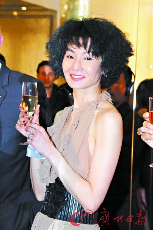 張曼玉前晚于上海為某國(guó)際品牌的新店剪彩,頭頂著爆炸頭現(xiàn)身的張曼玉,身著露背裝大展風(fēng)情,端著酒杯碰杯忙交際。當(dāng)日她的雙手還戴著十只戒指,十分引人注目,不過(guò)她就笑言建筑師男友Ole Scheeren要箍住自己并不需“十戒”!