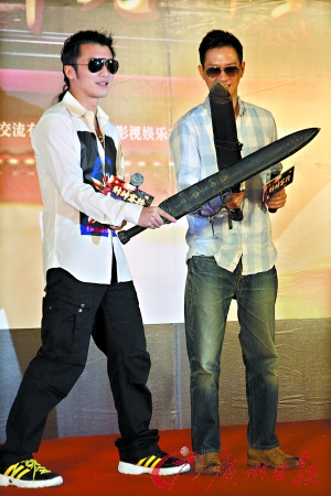 當(dāng)日,謝霆鋒第二次成為爸爸,他承認(rèn)自己現(xiàn)在心情大好,拍喜劇片正適合。二人在現(xiàn)場也擺開架勢比賽拔劍速度,兩人戲中有不少對打戲份,而家輝透露戲里,謝霆鋒武功高強(qiáng),“他的責(zé)任就在打,我的責(zé)任在搞”。張家輝更笑指謝霆鋒:“他生孩子很有本事!