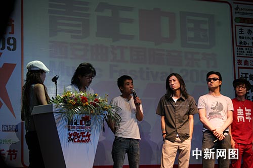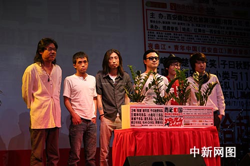 中新網(wǎng)7月2日電(楊洋) “青年中國(西安曲江)國際音樂節(jié)——2009新聞發(fā)布會(huì)暨青年音樂發(fā)展計(jì)劃啟動(dòng)儀式”于7月2日在京舉行。汪峰、張楚、謝天笑等知名音樂人到場助威,現(xiàn)場氣氛火爆。本次音樂節(jié)將于7月10日在西安曲江開幕,是國內(nèi)第一個(gè)時(shí)尚視覺音樂節(jié)。