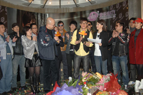 作為黃勇這張全新專輯的監(jiān)制,同時也是黃勇老板兼大哥的齊秦因為臨時有事沒能來到發(fā)布會現場,但通過VCR送上了他特別的祝福。齊秦對黃勇音樂給予了極大的肯定和祝福。黃勇的好友龐龍、尹相杰、熊天平等也通過VCR送上了祝福。北京圣天驕影視文化藝術有限公司老總李繼宏也送上了一份精心準備的寓意深刻的禮物——金話筒,希望黃勇把他的歌聲通過這只金話筒帶給全世界所有喜歡他音樂的朋友。(李學仕)