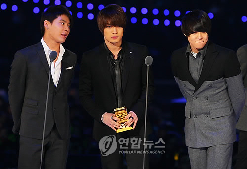 中新網(wǎng)11月23日電 與SM娛樂公司發(fā)生糾紛的東方神起3名成員(細(xì)亞俊秀、英雄在中、秘奇有天),21日出席了“2009M-net音樂頒獎(jiǎng)禮(MAMA)”。自7月底與SM發(fā)生專屬合同糾紛以后,這是他們3人首次重登國(guó)內(nèi)舞臺(tái)。