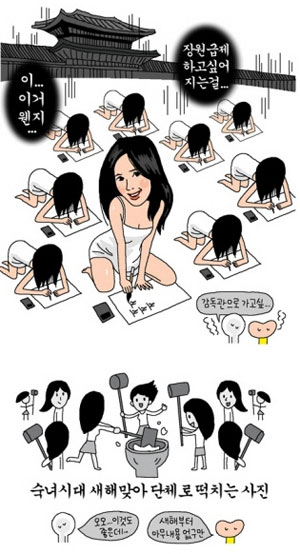 漫畫(huà)中的“淑女時(shí)代”在話(huà)語(yǔ)、人數(shù)、穿著和人物描寫(xiě)方面與韓國(guó)當(dāng)紅組合“少女時(shí)代”非常相似。少女時(shí)代的粉絲們對(duì)此感到憤怒,認(rèn)為漫畫(huà)中人物過(guò)去的服裝、姿勢(shì)、“打糕”等描述以及與畫(huà)面下方男性的對(duì)話(huà)內(nèi)容,明顯是性騷擾。