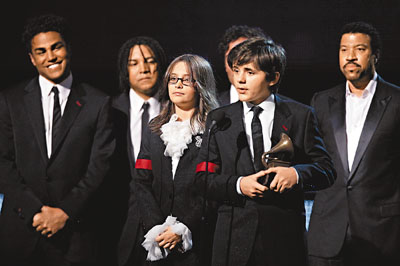 中新網(wǎng)2月2日電 已逝流行音樂天王邁克爾杰克遜榮獲本年度格萊美音樂節(jié)終身成就獎(jiǎng)。讓人意外的是,杰克遜的一對(duì)子女上臺(tái)替亡父領(lǐng)獎(jiǎng),更發(fā)表了感想。
