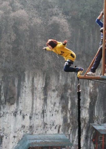 譚志玲在所有的選手當(dāng)中,一向以膽小著稱,認(rèn)識她的人都覺得她是一個文靜、可愛、膽子又非常小的女生。但是在“與JAY同型”的選秀活動中她做出了驚人的決定,挑戰(zhàn)自己膽小的性格,去冒險蹦極。屬于極限運(yùn)動的蹦極,敢于挑戰(zhàn)它的人都在少數(shù),像譚志玲這樣?jì)尚〉呐ヌ魬?zhàn)更是少之又少。而她這個勇敢的決定也讓她體驗(yàn)了一把勇敢者的刺激和高空墜落的快樂。在她的博客中她這樣寫道:“我不斷努力的去追逐自己的夢想!不管路途中遇到多少挫折都要堅(jiān)強(qiáng)的面對與克服!當(dāng)你最后成功的那一刻那你就是最“型”的!就像蹦極一樣!很多人都想讓自己成為很勇敢的人,去做很多人不敢嘗試的事!可是但真的面臨的時候心里又會打退堂鼓!但其實(shí),當(dāng)你站上蹦極臺你已經(jīng)不能后退了,如果你選擇放棄那你永遠(yuǎn)就只會原地踏步!你不去挑戰(zhàn)你又怎么知道自己還可以走多遠(yuǎn)呢?”