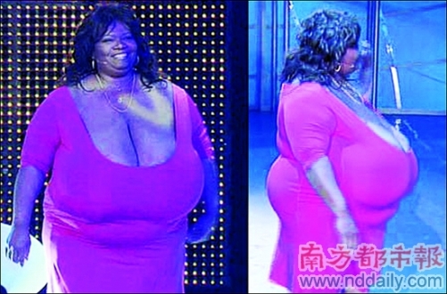 意大利一檔電視節(jié)目日前舉行了“全球最大胸圍女人”的比賽。美國30歲的女子諾瑪·斯蒂斯,以67英寸的傲人胸圍,連續(xù)10年勇奪“世界最大天然胸部”這一頭銜,她的一對乳房重量高達18公斤,創(chuàng)下吉尼斯紀錄。