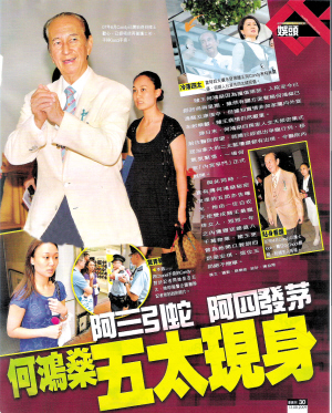87歲的賭王何鴻燊一生風(fēng)流,他有四位太太,包括元配黎婉華、二太太藍瓊纓、三太太陳婉珍及四太太梁安琪,雖然賭王在2004年曾聲稱四太太將會是他最后一位太太,但兩年前,他身邊卻多了一位太太。
