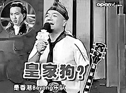 在25日四川衛(wèi)視播出的《天下笑友會(huì)》“誰(shuí)是下一個(gè)小沈陽(yáng)”環(huán)節(jié)中,嘉賓“棒棒糖”稱(chēng)要演唱香港BEYOND樂(lè)隊(duì)“黃家狗”的《真的愛(ài)你》,這時(shí)主持人大兵再問(wèn)一次,“那個(gè)叫什么?”“黃家狗!薄包S家駒是死了,不死也會(huì)被你氣死!贝蟊俅渭m正嘉賓的語(yǔ)音錯(cuò)誤,但該嘉賓依然堅(jiān)持自己的錯(cuò)誤讀法,“豬(駒)和狗不一樣都是畜生啊。”當(dāng)他彈奏完該曲后,興奮得又蹦又跳,大兵竟說(shuō):“當(dāng)年黃家駒在日本演出,就這么蹦死的!