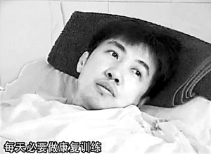 記者走進(jìn)病房時,鄢頗躺在病床上,李小冉就坐在一邊。鄢頗看上去雖然很虛弱,但是精神還不錯,還不時和李小冉有說有笑。他給記者看了右臂和右腿打的石膏:“打著石膏的三處都是有骨折的!薄昂笃谛枰畈欢喟肽甑揭荒甑拿刻毂匾目祻(fù)訓(xùn)練!闭f起鄢頗的傷情,李小冉忍不住再次落淚:“愛一個人就是,你會覺得雖然很累,但是你心里是很開心的,然后看著他一天天好起來,你會覺得特別踏實。”