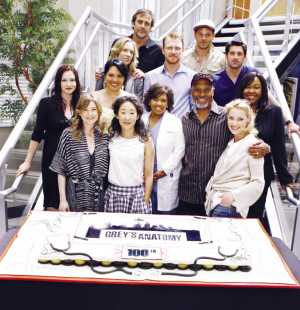 描寫(xiě)醫(yī)務(wù)人員生活的熱門(mén)美劇《實(shí)習(xí)醫(yī)生格蕾》日前完成了第100集的拍攝工作。劇組在洛杉磯的片場(chǎng)舉辦了一個(gè)慶祝派對(duì),并特意準(zhǔn)備了一個(gè)帶有“聽(tīng)診器”、 “手術(shù)刀”等圖案的大蛋糕。包括帕特里克·德姆西、桑德拉·歐、凱瑟琳·海格爾(前排右一)等主演均到場(chǎng)留下了“全家福”。