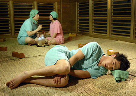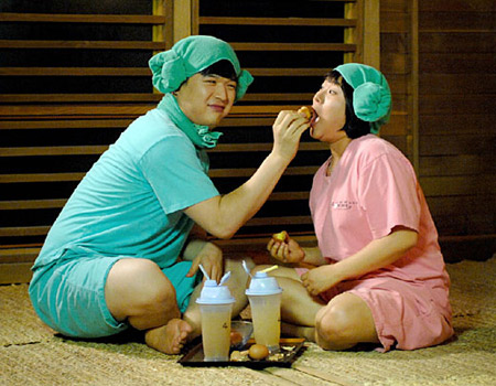 據(jù)韓國(guó)《中央日?qǐng)?bào)》報(bào)道,神童和金信瑛在《賢內(nèi)助女王》中出演了一對(duì)在桑拿房公共場(chǎng)合不顧禮儀夸張地相互示愛的情侶。這對(duì)情侶讓被從家里趕出來孤單的躺在桑拿房的崔哲鎬(音)的內(nèi)心無比郁悶。崔哲鎬(音)被妻子趕出家門后為了平靜心情去了桑拿房,但是被神童和金信瑛這對(duì)情侶咋咋呼呼夸張的行動(dòng)弄得郁悶不已。電視劇滑稽地表現(xiàn)了崔哲鎬煩躁郁悶的形象。