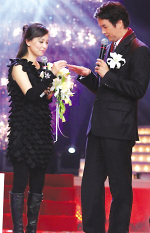 明星情侶林瑞陽、張庭5日雙雙現(xiàn)身上!2009十大快樂明星家庭晚會”錄制現(xiàn)場,林瑞陽當眾再次向張庭求婚,十分浪漫。