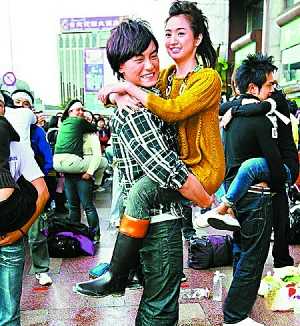 林依晨與“小綜”鄭元暢上周日為《我的億萬面包》宣傳,在臺(tái)北車站前重現(xiàn)劇中的“情人擁抱大賽”,兩人還上臺(tái)示范抱抱姿勢。由于林依晨怕自己太重令小綜抱不起她,故意整天不敢吃東西。問到兩人私下有沒有可能參加這類比賽?林依晨說:“獎(jiǎng)金很吸引,但我較適合參加斗氣比賽!毙【C說:“我較適合參加大胃王比賽吧!”