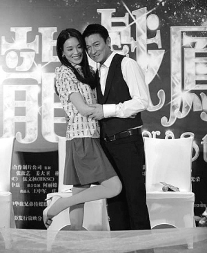 在《游龍戲鳳》中,劉德華飾演城中富豪,舒淇變身賭場發(fā)牌員,兩人演繹了一段浪漫情緣。這也是他們繼劉偉強(qiáng)的《衛(wèi)斯理之藍(lán)血人》后再度攜手,只不過,《藍(lán)血人》中兩人毫無感情瓜葛,但在《游龍戲鳳》中卻是專門談情說愛。昨日劉德華的右手無名指上戴著一枚戒指,和舒淇左手上的明顯是一對。對此,華仔解釋說戒指“只是片中道具”。娛樂記者們不肯輕易放過他,有人大聲問:“如果舒淇嫁給你,你會答應(yīng)嗎?”劉德華隨即把難題拋給了舒淇:“你不知道嗎?我向她求過兩次婚呢,可都被拒絕了。”不過舒淇卻眼含深情地表白道:“其實(shí)他是我們所有女人心目中最好的男人!
