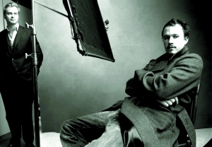繼前兩年陸續(xù)推出《好萊塢謀殺案》、《希區(qū)柯克經典系列》等重磅照片之后,今年《名利場》雜志又推出了2008年好萊塢熱門導演和演員的組合圖片集。每部熱門影片身在幕后的導演與主演一起出鏡,共同演繹了這些大片。該套寫真最吸引眼球的就是《黑暗騎士》導演克里斯托夫·諾蘭和主演希斯·萊杰的“重聚”。這張照片是整組寫真中唯一的一張黑白照,以示對萊杰的紀念。