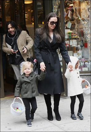 2月22日就要來(lái)到了,這個(gè)一年一度的美國(guó)電影的節(jié)日牽動(dòng)著我們每一位影迷的心,當(dāng)然了誰(shuí)會(huì)成為今年奧斯卡的贏家同樣撲朔迷離,我們都為自己支持的明星捏了一把汗,但是奧斯卡提名影后安吉麗娜·朱莉好像并沒(méi)有感覺(jué)到緊張,2月17日還拉著自己的兩位可愛(ài)的女兒去紐約購(gòu)物,當(dāng)天的安吉麗娜·朱莉依然很酷,黑超墨鏡,配黑色大衣,但是低身和寶貝們細(xì)語(yǔ)時(shí)仍然透露這無(wú)限的母愛(ài),希望這次奧斯卡的結(jié)果能讓這位有愛(ài)心的媽媽滿意。