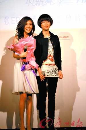 Miumiu鞏新亮——《非誠(chéng)勿擾》里范偉身邊的那位身材惹火的女秘書(shū)。這位初涉銀幕的性感美女昨天在京首發(fā)EP唱片了,而師姐尚雯婕昨天也專(zhuān)門(mén)到場(chǎng)捧場(chǎng)。