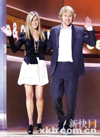 珍妮佛·安妮斯頓和歐文·威爾森近日為電影《馬利和我》四處宣傳。日前,他們來到德國參加一個當地著名的電視綜藝節(jié)目。