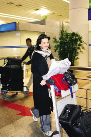 昨晚8時(shí)25分,奧斯卡得主、法國(guó)影星朱麗葉·比諾什由韓國(guó)首爾飛抵上海浦東國(guó)際機(jī)場(chǎng)。比諾什此次抵滬可謂十分低調(diào),現(xiàn)身機(jī)場(chǎng)時(shí)僅有一名男助理陪同。機(jī)場(chǎng)沒有影迷接機(jī),也沒有其他媒體來競(jìng)相采訪,接機(jī)的主辦方同樣沒有拿出顯眼的標(biāo)語,現(xiàn)場(chǎng)十分冷清。