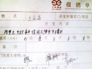 陳楚生“失蹤門”事件曝光后,外界有關此事有多種傳聞,一些不實說法也著實讓雙方都百口莫辯。而就在13日晚,在題為《憤怒!天娛高價聘請網(wǎng)絡寫手搞臭陳楚生!有圖有真相!》的帖子中,一位ID為“今天是1月13日”的網(wǎng)民曝光了“天娛經(jīng)費報銷單”。這份報銷單的開支內(nèi)容一欄寫著“陳楚生失蹤事件媒體及博客寫手費用”,審批欄有天娛傳媒宣傳總監(jiān)吳夢知、總經(jīng)理龍丹妮、副總楊柳的簽名,意指天娛暗中請網(wǎng)絡寫手抹黑陳楚生。