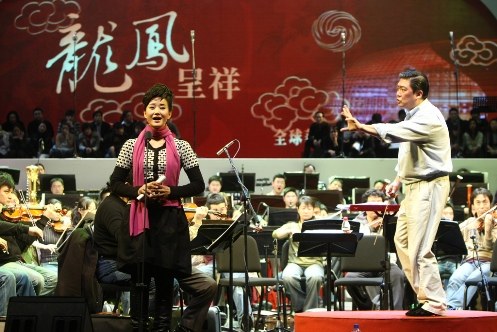 中新網(wǎng)1月24日電 由國(guó)家大劇院與鳳凰衛(wèi)視聯(lián)合主辦,將于今晚登場(chǎng)的“龍鳳呈祥-全球華人新春音樂盛典2009”,1月23日,在國(guó)家大劇院進(jìn)行了緊鑼密鼓的彩排。藝術(shù)總監(jiān)徐沛東、指揮余隆、宋祖英、廖昌永等所有參與演出的藝術(shù)家與中國(guó)愛樂樂團(tuán)、中國(guó)人民解放軍樂團(tuán)、中國(guó)歌劇舞劇院合唱團(tuán)一道進(jìn)行了高標(biāo)準(zhǔn)、嚴(yán)要求的反復(fù)磨合。