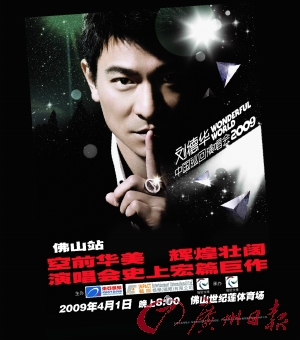 他成就了一種精神——永不言敗,他鑄就了一個(gè)榜樣——奮斗不息,他就是華人演藝圈的“勞!薄?jiǎng)⒌氯A。在2009本命年,劉德華將把 “Wonderful World(奇幻世界)”巡回演唱會帶到中國內(nèi)地,馬不停蹄地與各地樂迷分享他出道以來最豪華的演唱會。而值得廣東樂迷開心的是,劉天王將于3月20日和4月1日分別登陸廣州奧林匹克中心和佛山世紀(jì)蓮體育場,兩場演唱會都可容納3萬多樂迷。