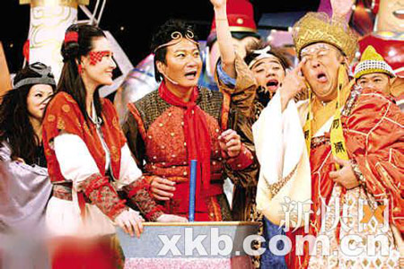 曾志偉、錢(qián)嘉樂(lè)、王祖藍(lán)主持的《獎(jiǎng)門(mén)人》節(jié)目近日錄影,黎耀祥、劉玉翠、郭少蕓、HOTCHA等嘉賓出席。眾人扮作《西游記》里的人物搞怪出場(chǎng),現(xiàn)場(chǎng)熱鬧非凡,笑聲不斷。