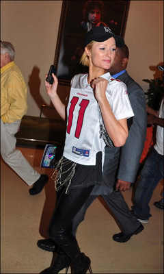 北京時間2月2日(北美時間2月1日),美國大型體育盛況超級碗在眾多明星的歌唱中緩緩的拉開了序幕,臺上明星璀璨,臺下更是星光熠熠,當(dāng)天晚上(2月2日)記者就拍到了豪門名媛帕麗斯·希爾頓。當(dāng)晚的帕麗斯·希爾頓身穿一身運動服裝,但是仍然難掩甜美性感,據(jù)悉當(dāng)晚希爾頓就程飛機飛回了英國倫敦。