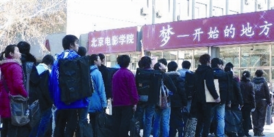 在影視界,“中戲”、“上戲”、“北電”呈三足鼎立之勢,其地位無人可以撼動(dòng),人稱“明星搖籃”。近年來這三所學(xué)校藝術(shù)考試持續(xù)升溫,報(bào)考人數(shù)屢創(chuàng)新高。在北電,表演專業(yè)一直被認(rèn)為是最難考的專業(yè),雖然今年的招生人數(shù)由往年的30人增加到75人,報(bào)名人數(shù)卻高達(dá)4234人,淘汰率為98.2%。即便知道面臨著如此殘酷的競爭,可那些懷揣著明星夢想的俊男靚女們,仍不遠(yuǎn)萬里,從五湖四海為了一個(gè)共同的目標(biāo)走到了一起,懷著明星夢擠上這座獨(dú)木橋。