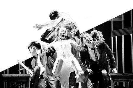 演員們除了臺(tái)詞對(duì)白,個(gè)個(gè)都還得客串“百老匯音樂(lè)劇演員”,一會(huì)兒推著辦公桌“噼里啪啦”跳起踢踏舞,一會(huì)兒高唱原創(chuàng)歌曲《Money,Money,Money》。更絕的是表現(xiàn)公司裝修的一幕,姚晨和一幫“裝修工人”揮著錘子、鏟子,直接就在一堆廢銅爛鐵上現(xiàn)場(chǎng)表演起打擊樂(lè)。