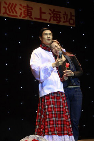 中新網(wǎng)4月27日電 《劉老根大舞臺》小沈陽笑轉(zhuǎn)2009,全國巡演上海站昨晚(26日)在上海大舞臺(上海體育館)拉開序幕,王金龍和毛毛(丫蛋)夫婦同臺獻藝,毛毛上演了野蠻老婆的戲碼。丫蛋以野蠻的招數(shù)著稱,這次剛剛新婚不久的夫妻二人,給上海的觀眾朋友們來了個以外驚喜。觀眾的歡呼聲讓整個體育館達到了高潮。
