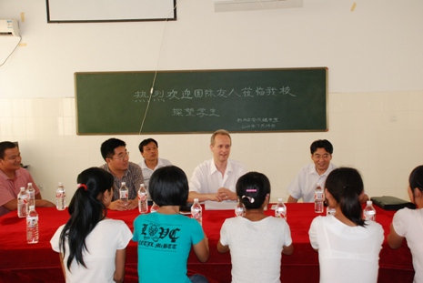 中新網(wǎng)7月15日電 據(jù)菏澤市僑聯(lián)消息,7月14日,德國中國教育資助工程協(xié)會主席托馬斯·費爾和中國駐法蘭克?傤I(lǐng)館前領(lǐng)事譚華訓(xùn)一行,在菏澤市僑聯(lián)副主席盧文朋、張忠的陪同下,到牡丹區(qū)安興鎮(zhèn)中學(xué)和鄄城縣彭樓鎮(zhèn)兩所中學(xué)進(jìn)行助學(xué)考察。