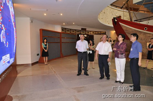 中新網(wǎng)7月28日電 據(jù)廣東僑網(wǎng)消息,7月27日上午,在粵出席“第六屆世界華人論壇”的國(guó)務(wù)院僑辦主任李海峰參觀了廣東華僑博物館,高度評(píng)價(jià)廣東華僑博物館陳展。廣東省僑辦主任吳銳成、副主任林琳及廣東華僑博物館館長(zhǎng)王明惠等陪同參觀。