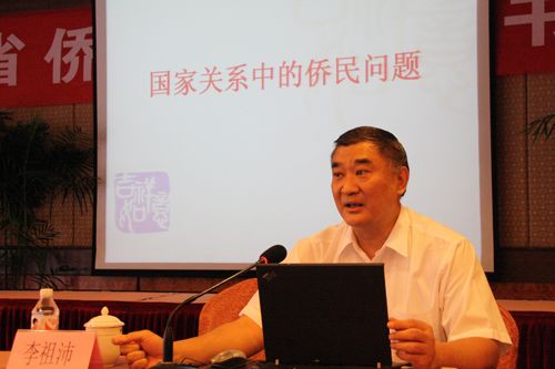 李祖沛就《國(guó)際關(guān)系中的僑民問題》向與會(huì)人員作了深刻闡述。他對(duì)僑民的產(chǎn)生、形成和身份界定作了講解,把國(guó)家關(guān)系對(duì)僑民的影響作了闡述,重點(diǎn)講解了僑民對(duì)雙邊關(guān)系、僑居國(guó)、祖(籍)國(guó)的影響。通過(guò)列舉大量事例,結(jié)合僑聯(lián)干部工作中遇到的許多問題,李祖沛作了詳細(xì)講解。針對(duì)僑民的特殊性和當(dāng)前存在的現(xiàn)實(shí)問題,他也作了剖析,并在有關(guān)國(guó)家的僑民工作中也提到了一些具體做法和建議。
