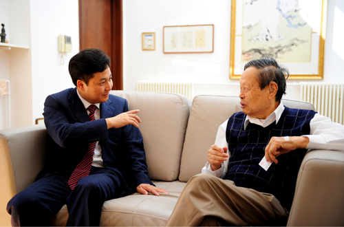 已是88歲高齡的楊振寧教授,見到友人朱奕龍一行來家拜訪,很高興,緊緊拉住朱奕龍的手,熱情地招呼朱奕龍坐在他的身邊,夫人翁帆沏上濃濃的茉莉花茶,大家暢敘友情。楊振寧教授還爽朗答應朱奕龍的邀請,明年春暖花開的季節(jié),一定攜夫人到寧夏來走一走看一看。(舒展)