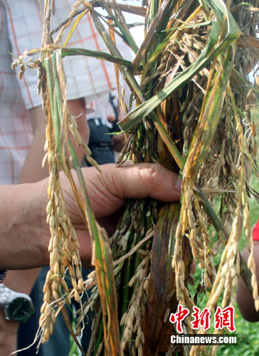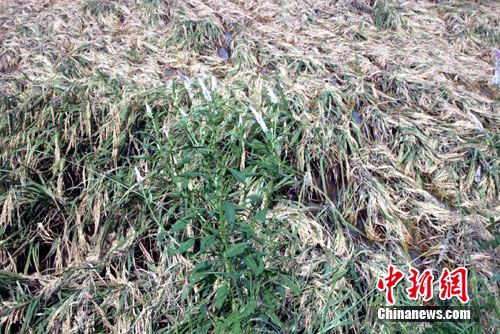 記者在當?shù)厮,大片成熟晚稻依然泡在水中。拔起一株看見谷穗已?jīng)發(fā)芽。隨行的中國熱帶科學院專家分析說,這樣的稻谷人已無法食用,唯有趕緊翻地準備下一季生產(chǎn)。