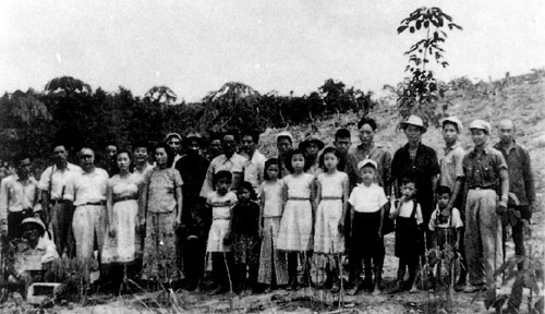 “這里,戴眼鏡那個(gè)就是我父親!崩椎氯f(wàn)說(shuō),他還記得拍照片的地點(diǎn),就在芒果園后面山坡的橡膠林。