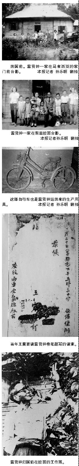 這張照片背后,我們不僅能感受到一位愛(ài)國(guó)華僑的眷眷之心,還可引申出更大的時(shí)代背景:以雷賢鐘為代表的大批愛(ài)國(guó)華僑,在新中國(guó)成立初期,為祖國(guó)橡膠事業(yè)做出過(guò)杰出貢獻(xiàn)。