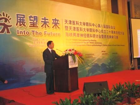 25日晚,天津醫(yī)科大學(xué)眼科中心第八屆國(guó)際會(huì)議暨天津醫(yī)科大學(xué)眼科中心成立二十周年慶;顒(dòng)在天津賽象酒店舉行,喬衛(wèi)代表中國(guó)僑聯(lián)向眼科中心表示祝賀,他說(shuō),天津醫(yī)科大學(xué)眼科中心作為中國(guó)僑聯(lián)“科教興國(guó)示范基地”,曾多次參與中國(guó)僑聯(lián)組織的“健康復(fù)明行動(dòng)”,在各家基地中發(fā)揮了非常好的典型示范作用,祝愿眼科中心越辦越好。