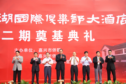 中國(guó)僑聯(lián)副主席、浙江省僑聯(lián)主席王成云、嘉興市委常委、市紀(jì)委書(shū)記馮志禮等領(lǐng)導(dǎo)以及市級(jí)有關(guān)部門(mén)、南湖區(qū)委、區(qū)政府、南湖國(guó)際俱樂(lè)部二期項(xiàng)目投資方、建設(shè)單位、市多家媒體等近100人出席了奠基儀式。