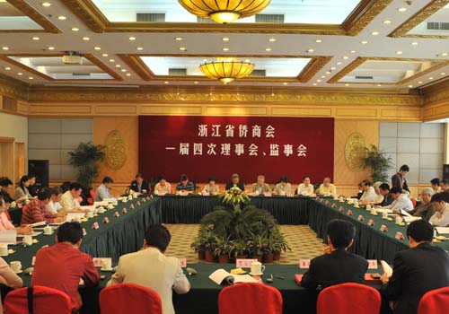 中新網(wǎng)10月26日電 浙江省僑商會第一屆理事會、監(jiān)事會第四次會議于2009年10月20日在杭州新僑飯店召開,48位理事、監(jiān)事出席會議,浙江省僑商會維權(quán)委員會成員和部份市、縣僑商會領(lǐng)導或秘書長列席會議。