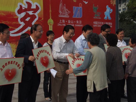 上海市僑辦主任崔明華、副主任陳文佳,金山區(qū)委常委、統(tǒng)戰(zhàn)部長劉其龍,朱涇鎮(zhèn)黨委書記過維義、朱涇鎮(zhèn)鎮(zhèn)長王寶元到活動現(xiàn)場為該區(qū)8名困難歸僑僑眷頒發(fā)“上海僑界醫(yī)療幫困卡”。