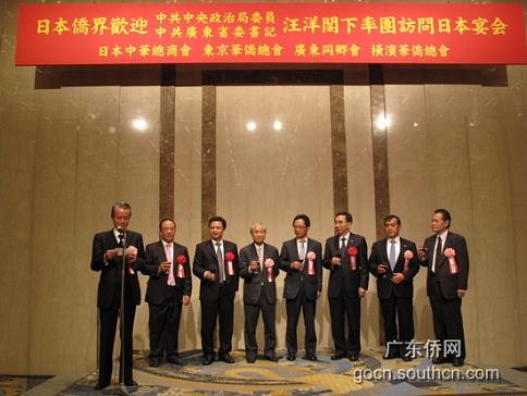 中新網(wǎng)11月6日電 據(jù)廣東僑網(wǎng)消息,11月4日晚上,為歡迎中共中央政治局委員、廣東省委書記汪洋率團(tuán)訪問日本,日本中華總商會、東京華僑總會、日本廣東同鄉(xiāng)會、橫濱華僑總會在東京最著名的赤坂格蘭王子大酒店五色大廳聯(lián)合舉行歡迎宴會。這也是日本新、老僑團(tuán)歷史上首次聯(lián)合舉辦活動歡迎國內(nèi)的代表團(tuán)。